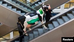 ผู้จัดงานเกษตรแฟร์ที่รัฐมิชิแกน นำวัวปลอมสองตัวที่ทำจากไฟเบอร์กลาสขนาดเท่าตัวจริง ชื่อว่า "มิลค์เชค" และ "บัตเตอร์คัพ" มาใช้ในการสาธิตวิธีรีดนมวัวแทนวัวจริง