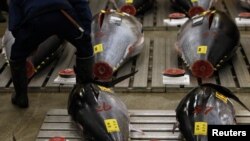 สมาคม International Union for Conservation of Nature ซึ่งมีสำนักงานใหญ่อยู่ที่ประเทศสวิตเซอร์แลนด์ระบุในรายงานที่เผยแพร่ทุกสิบปีว่า ขณะนี้ ปลาทูน่าครีบน้ำเงินถูกเปลี่ยนจากรายชื่อสัตว์ที่น่าเป็นห่วงน้อยที่สุด มาอยู่ในรายชื่อสัตว์ที่มีความเสี่ยงที่จะสูญพันธุ์ได้