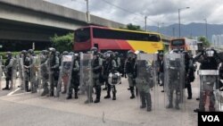 อีกด้านหนึ่ง ผู้บริหารเกาะฮ่องกงออกมากล่าวปกป้องการกระทำของตำรวจในการปราบปรามกลุ่มผู้ประท้วงในช่วงสุดสัปดาห์ที่ผ่านมาโดยใช้วิธีการและอุปกรณ์หลายประเภท รวมทั้ง หัวฉีดดับเพลิง แก๊สน้ำตา และไม้กระบอง ในการตอบโต้ผู้ประท้วงที่ใช้ระเบิดขวดและก้อนอิฐปาใส่ตำรวจ พร้อมกับปิดถนนและจุดกองเพลิงเผาสิ่งของต่างๆ