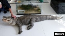 ชายชาวเพนซิลเวเนีย ชื่อ นายโจอี้ เฮนนี อายุ 65 ปี บอกว่าจระเข้ สัตว์เลี้ยงบำบัดความบกพร่องทางอารมณ์ ช่วยเขาต่อสู้กับอาการซึมเศร้าโดยไม่ต้องใช้ยาบำบัด