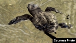 คุณ Kate Mansfield นักชีววิทยาทางทะเลเเห่งมหาวิทยาลัย University of Florida เป็นหัวหน้าการวิจัยครั้งนี้ เธอกล่าวกับผู้สื่อข่าววีโอเอว่าทีมงานใช้ป้ายขนาดจิ๋วติดลงไปบนตัวลูกเต่าหัวฆ้อน (loggerhead) จำนวน 17 ตัวก่อนจะปล่อยลูกเต่าลงสู่ทะเลแอตเเลนติกเหนือที่รัฐฟลอริด้า และทีมงานทำการเฝ้าติดตามดูการเดินทางของลูกเต่าหัวฆ้อนในท้องทะเลนานถึง 220 วัน